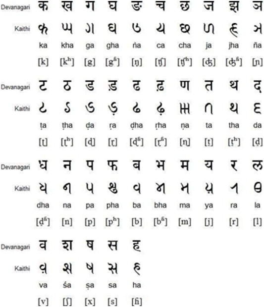 प्राप्त देवनागरी और कैथी का तुलनात्मक रूप इस प्रकार है-